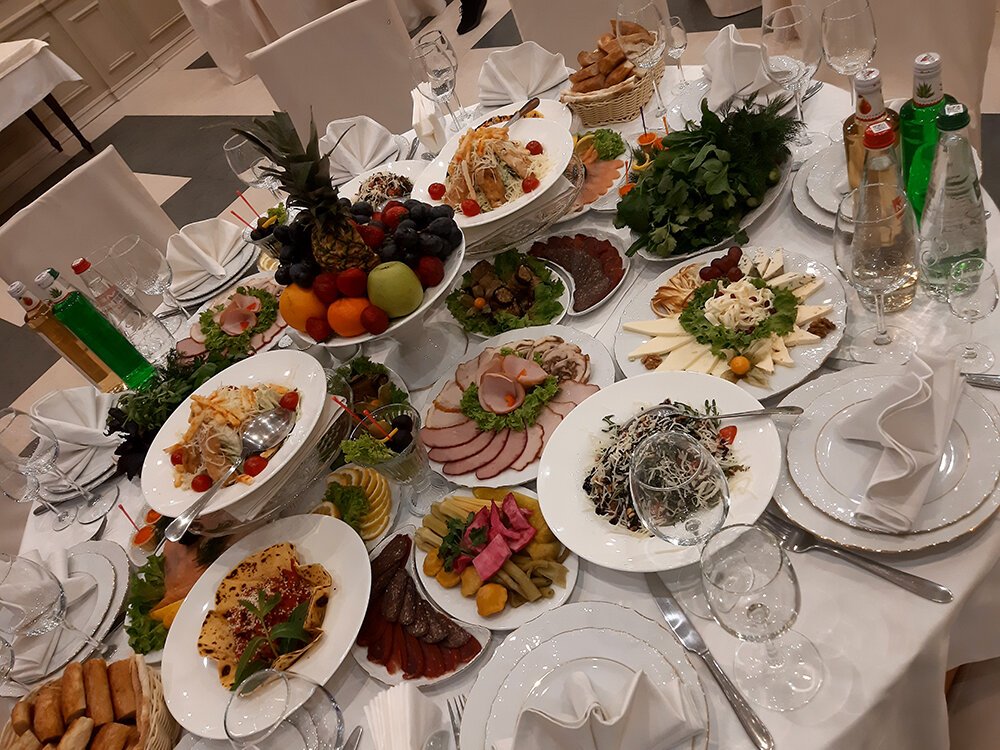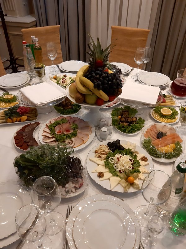 * Вся еда была очень свежей и вкусной. Понравилось всё даже самым привередливым гостям. В нашем меню были салаты, горячие и холодные закуски, рыба, мясо. Отдельное спасибо за вкуснейшие торт. Всё было вкусно и очень аппетитно выглядело.
